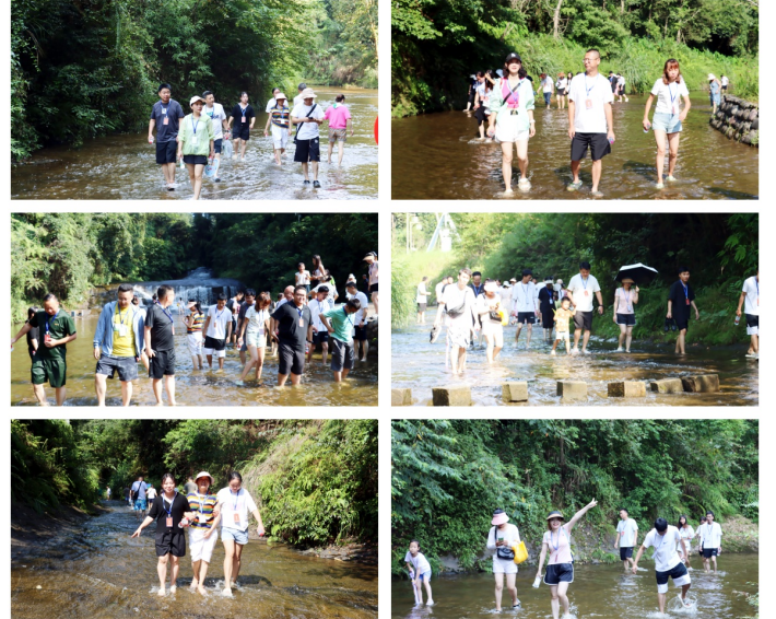 團(tuán)隊(duì)成員一行從觀沱下渡下船后,經(jīng)過1公里山間林蔭小道,開啟長略7公里的“中國最長石板河”踩水體驗(yàn):大家欣然下水后發(fā)現(xiàn),石板河一石沉底,托起淺淺清流,或急速、或緩流、徐徐下行、人水合一、動(dòng)態(tài)接觸,讓人全新體驗(yàn)感十足;兩岸奇峰夾峙、林木森森,成就天下石板河之絕唱。大家先后經(jīng)過一碗水、一顆松、碧水長灘、響灘子瀑布、出谷食坊、水簾飛虹、水舞山間、戲水戰(zhàn)場(chǎng)等景點(diǎn),在溯溪戲水的樂園、避暑游樂的天堂中,讓人縱情山水,盡享水趣。然后,乘坐體驗(yàn)飛天魔毯穿越叢山峻嶺之間,遙望七彩玻璃水滑道的蜿蜒飛馳,感受大自然鬼斧神工和天下穹隆的瑰麗之美。