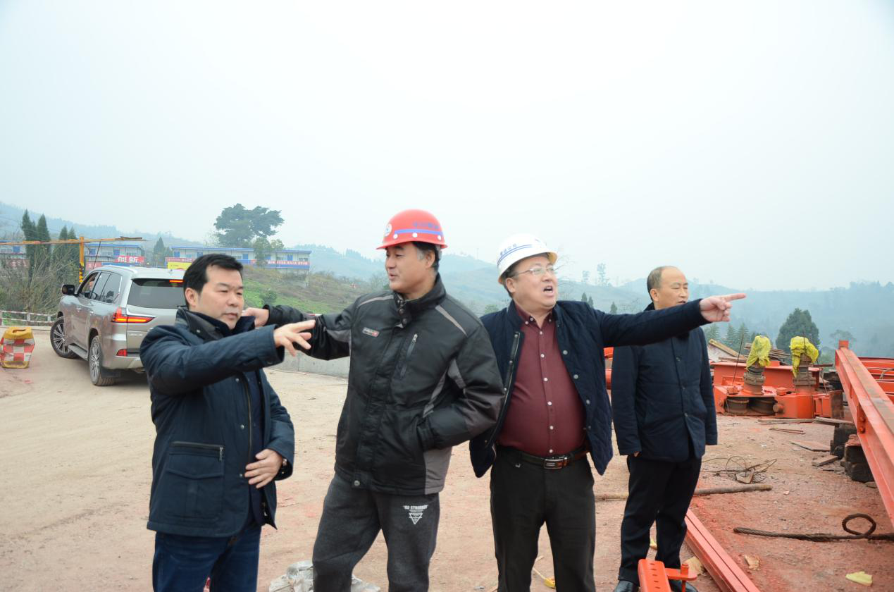 謝董事長一行深入鐵山隧道出口、鐵山互通及L連接線、LJ07合同段一號梁場及州河特大橋引橋營山岸橋臺,調(diào)研了施工進度、下步工期安排。