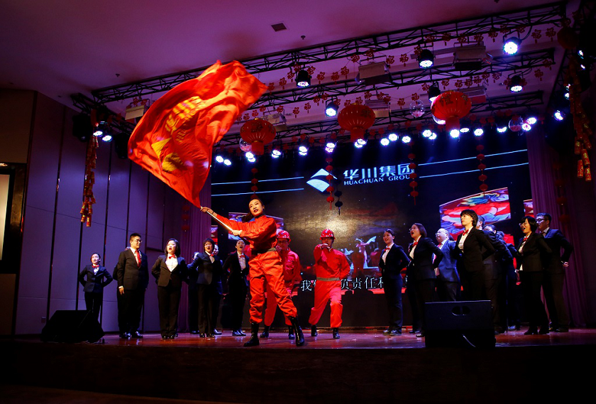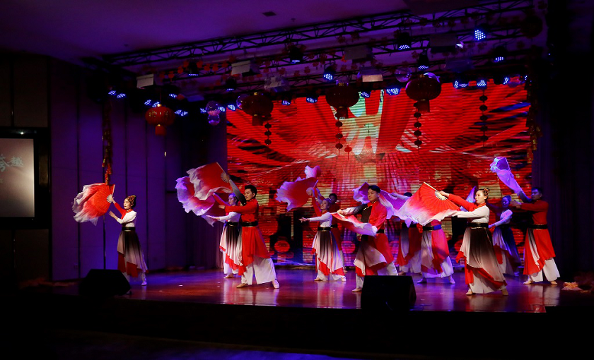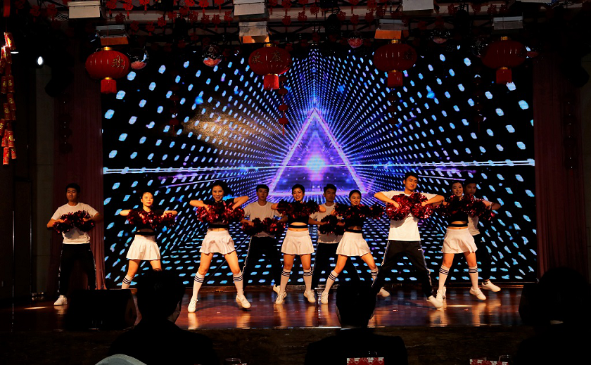 下午12點(diǎn)15分,集團(tuán)在天和緣酒店隆重舉行2019年新春團(tuán)拜會。大家歡聚一堂、載歌載舞、喜迎新春。團(tuán)拜會在集團(tuán)總部中層領(lǐng)導(dǎo)干部的表演唱《華川之歌》中熱鬧開場,隨后舞蹈、合唱、啦啦操、軍體拳、歌曲串燒悉數(shù)登場。