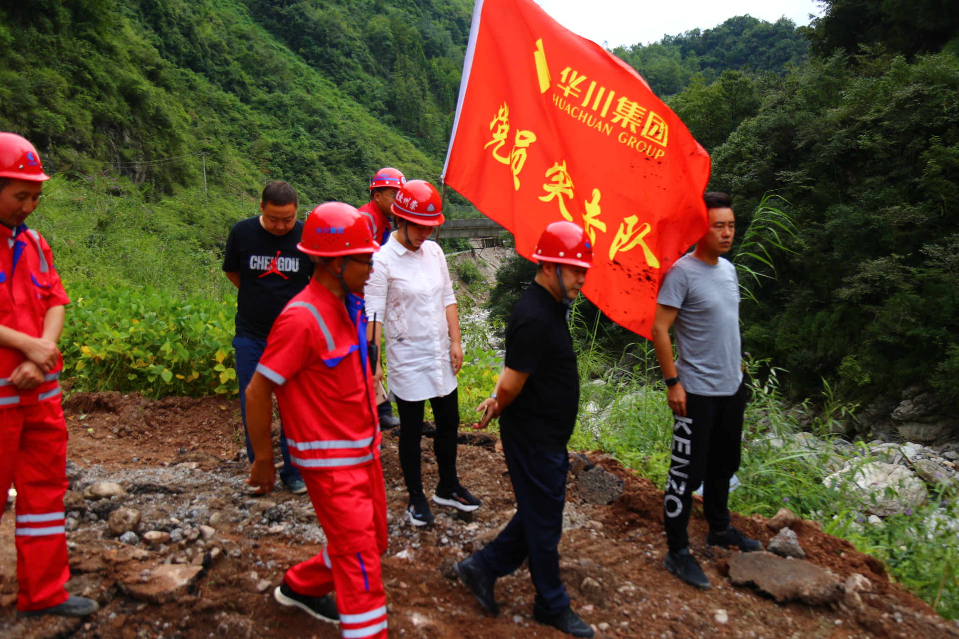 8月28日上午,集團黨委書記、董事長、總裁謝應(yīng)文,黨委副書記施繼梅一行深入崇州雞冠山搶險保通施工現(xiàn)場進行工作指導(dǎo),崇州市交通局局長譚鳳君同行視察了搶通進度,華途公司總經(jīng)理趙君、黨支部書記孫健,華鼎公司總經(jīng)理蔣藝等人陪同,項目經(jīng)理楊海全、總工趙杰等人隨行匯報了搶險保通相關(guān)工作。