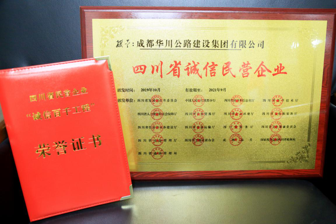 誠信華川魂 品質(zhì)華川人 ---華川集團獲評“四川省誠信民營企業(yè)”榮譽稱號