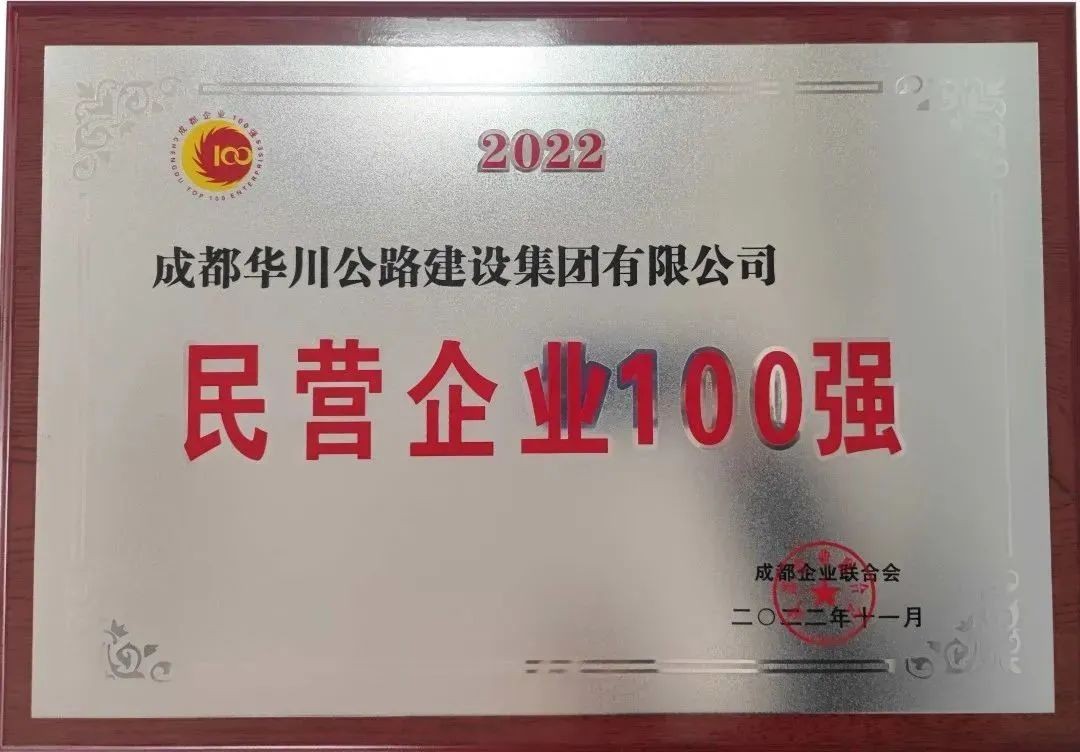 華川集團(tuán)榮獲2022年度“成都市民營(yíng)企業(yè)100強(qiáng)”