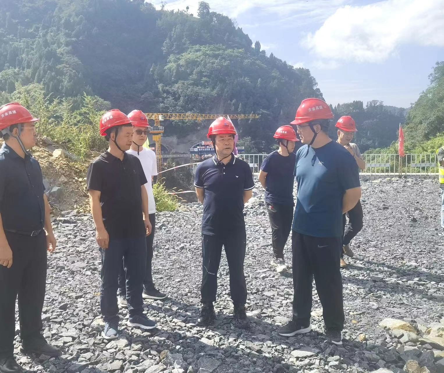 8月12日,集團(tuán)黨委書記、董事長、總經(jīng)理謝應(yīng)文帶隊調(diào)研督導(dǎo)古金項目建設(shè)工作,強(qiáng)調(diào)要堅決落實省委省政府要求,緊盯項目建設(shè),加強(qiáng)協(xié)調(diào)、強(qiáng)化保障、加快進(jìn)度,全力以赴打好攻堅戰(zhàn),高質(zhì)量完成目標(biāo)任務(wù)。