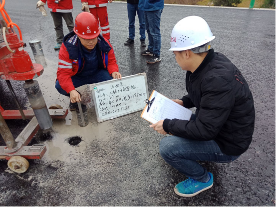 此次預(yù)驗收檢查組業(yè)主公司、監(jiān)理駐地辦、監(jiān)理試驗室、總包部以及第三方檢測機構(gòu)代表共同組成。嚴(yán)格按照交驗的技術(shù)標(biāo)準(zhǔn)及設(shè)計要求進行,對K52+601.6~K59+125處全幅落路面施工的寬度、橫坡、厚度、壓實度、滲水系數(shù)等指標(biāo)嚴(yán)格檢測
